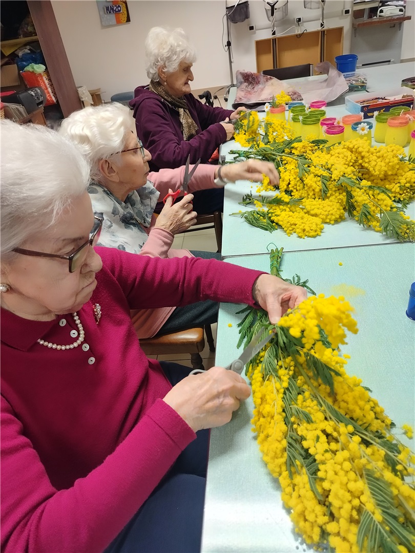 In occasione della Festa della Donna, abbiamo preparato vasetti e ramoscelli di mimosa per dare un tocco di bellezza alla Casa